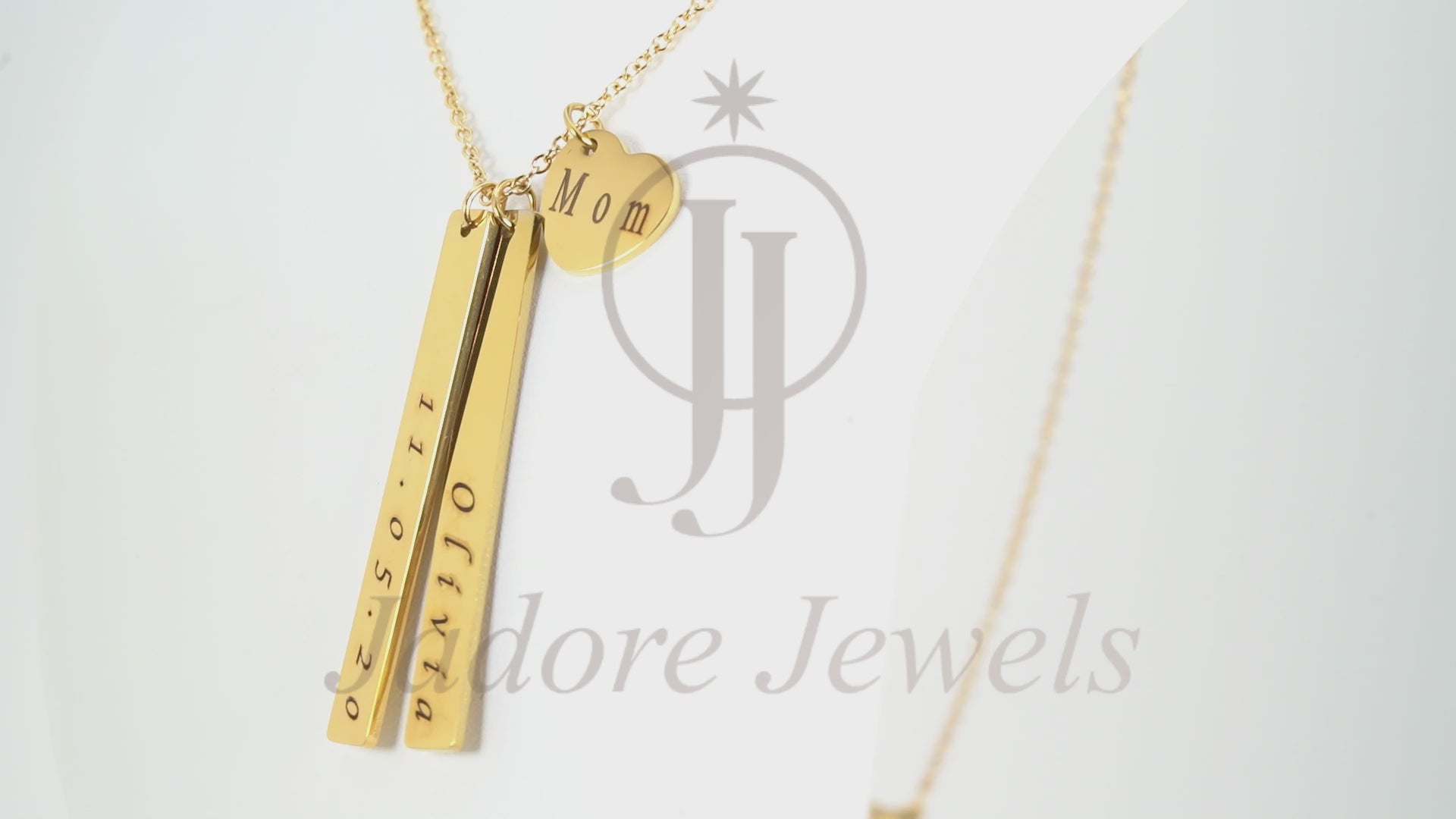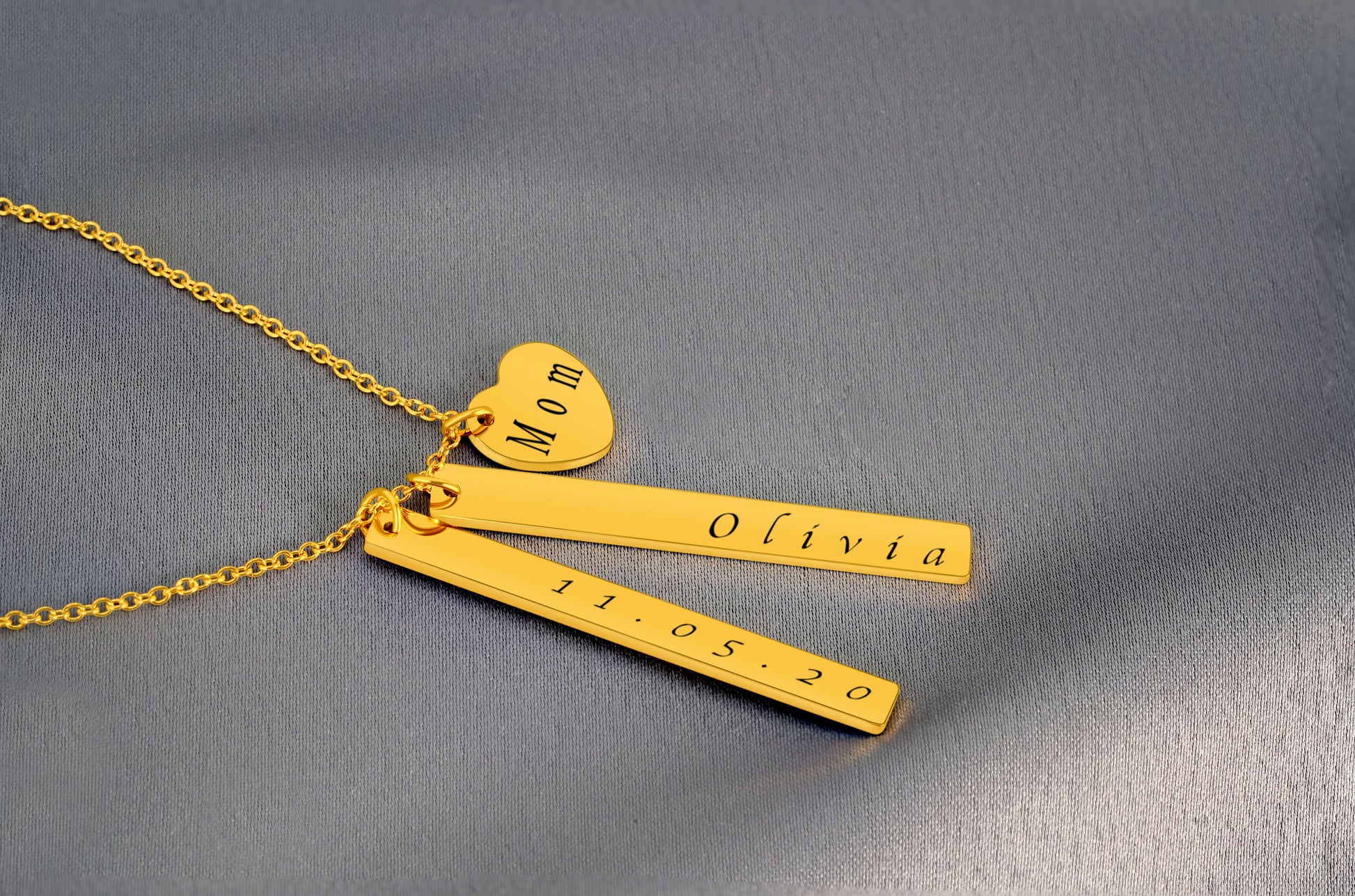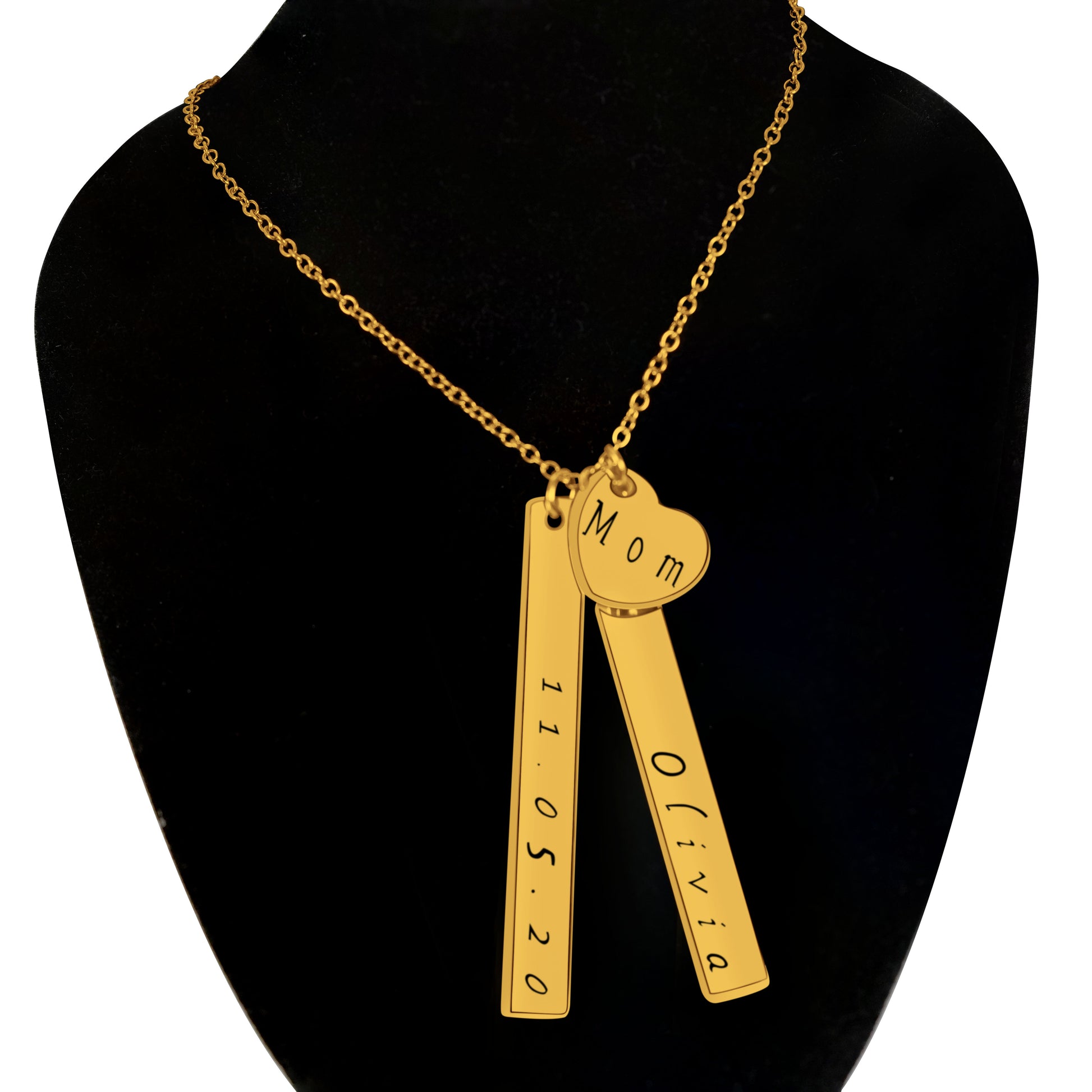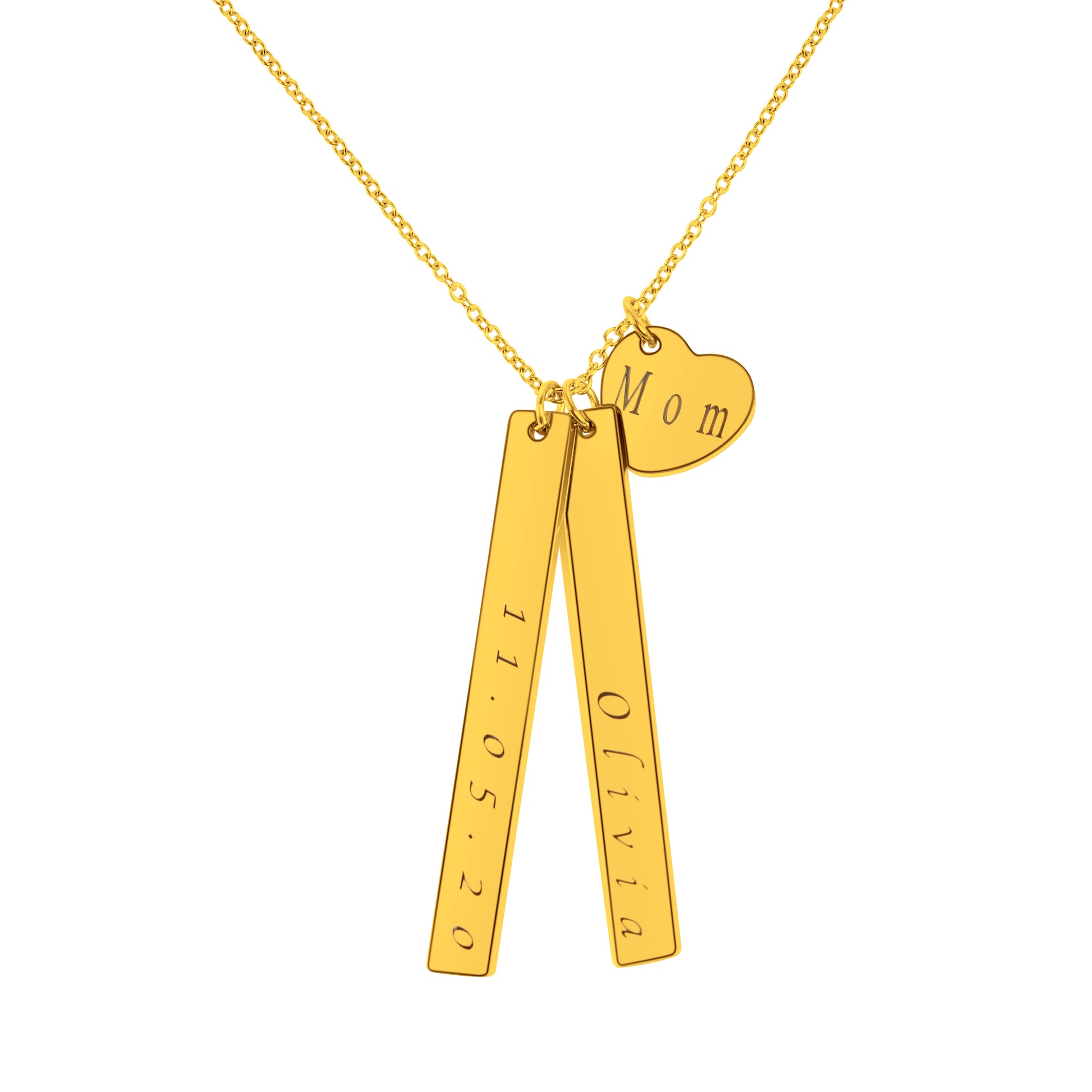 2 Bars (50mm x 6mm x 1.5mm) & 1 Heart Pendant Personalized (14mm x 12.5mm) On a 18K Vermeil Necklace