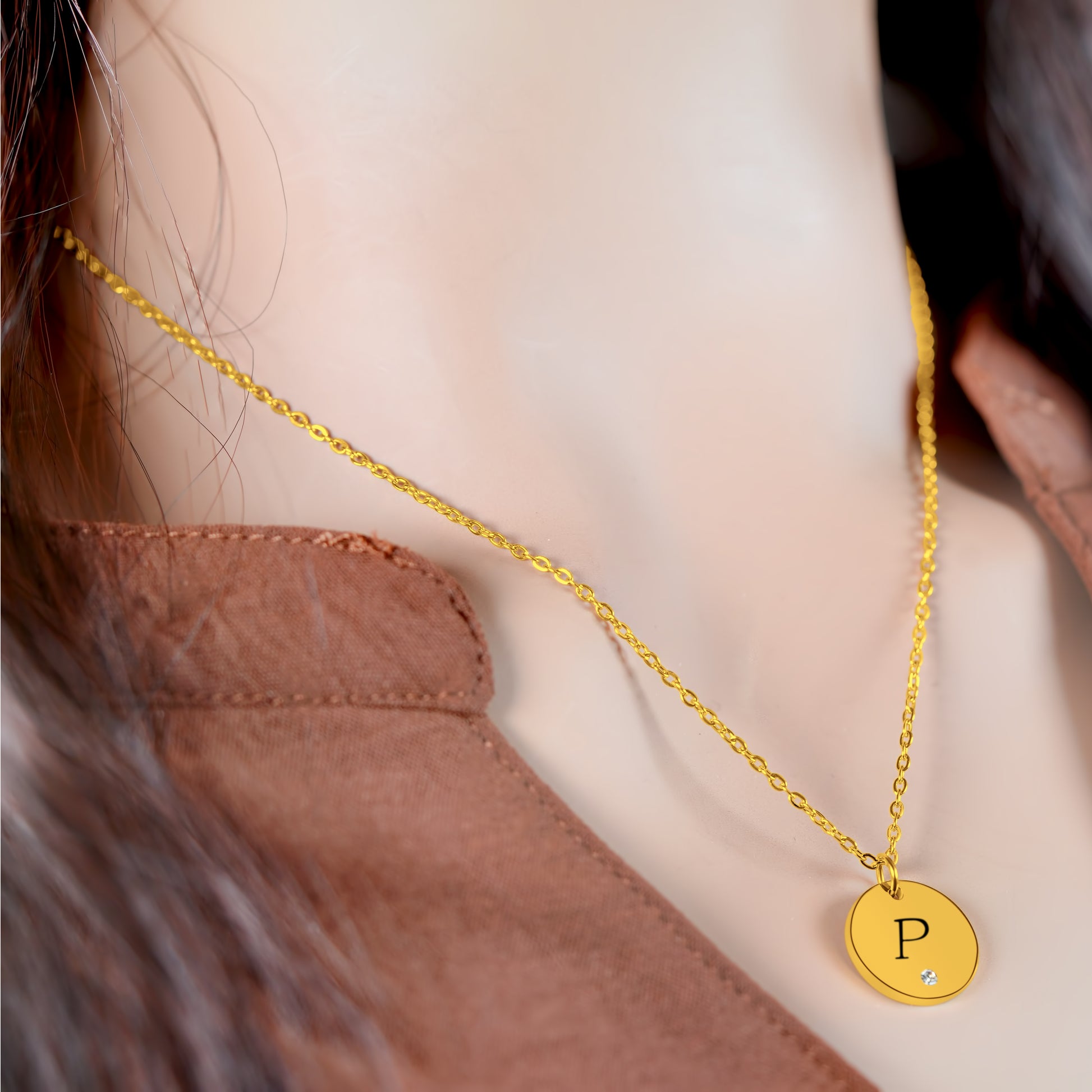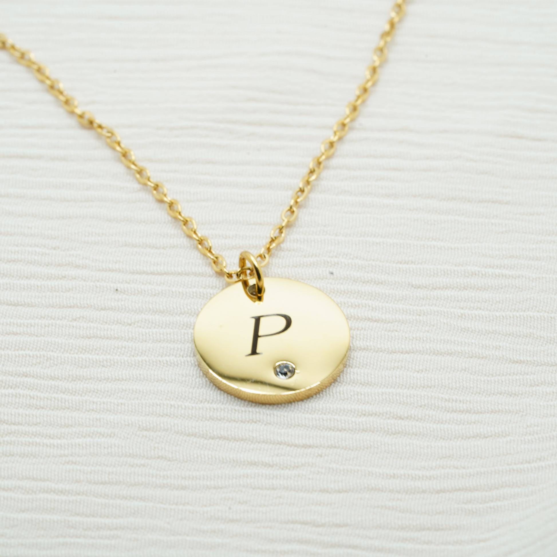 This pendant necklace is a beautiful 18k gold vermeil piece. Easily customizable with a choice of font to your liking. Features a 15mm circular pendant on a gold customizable charm/pendant.