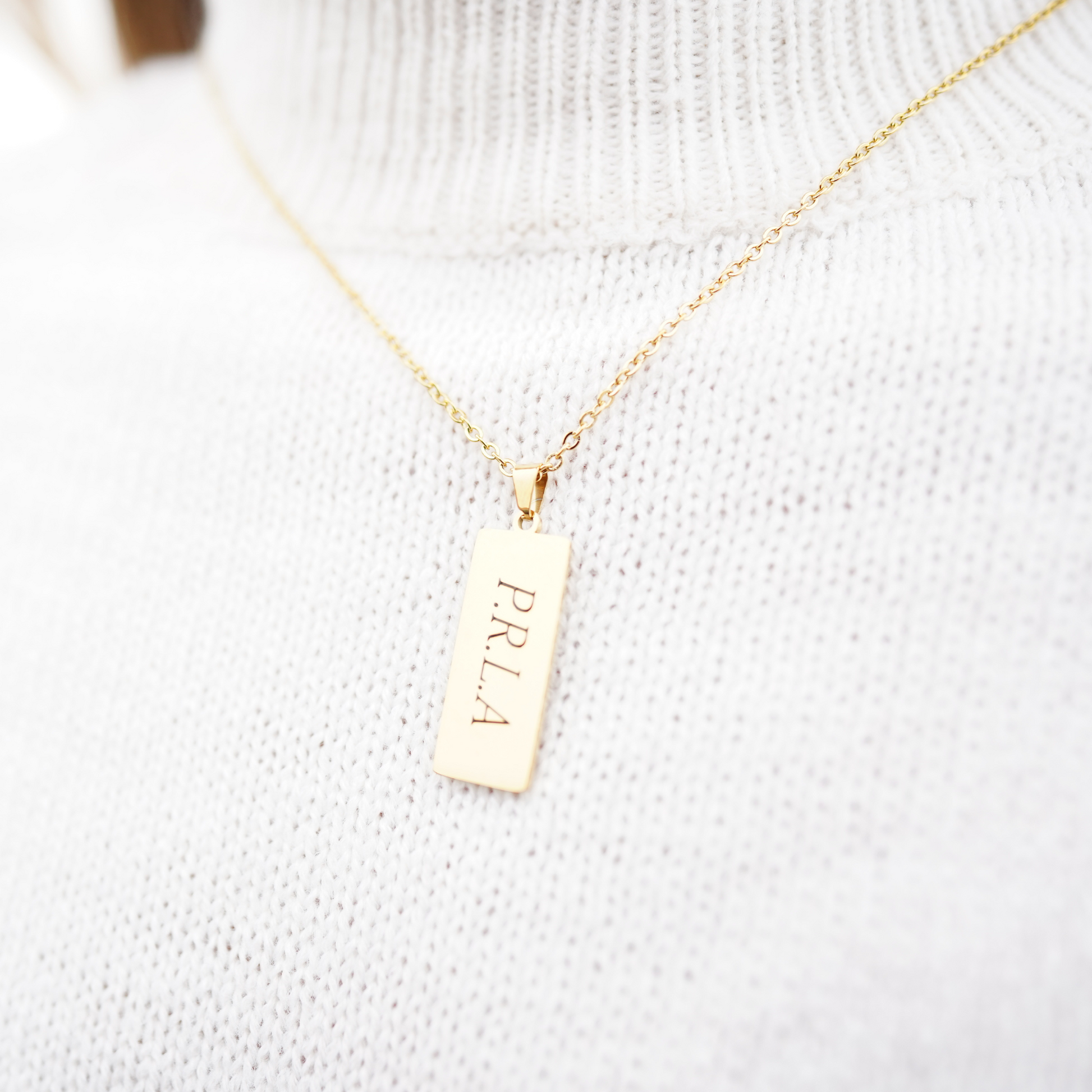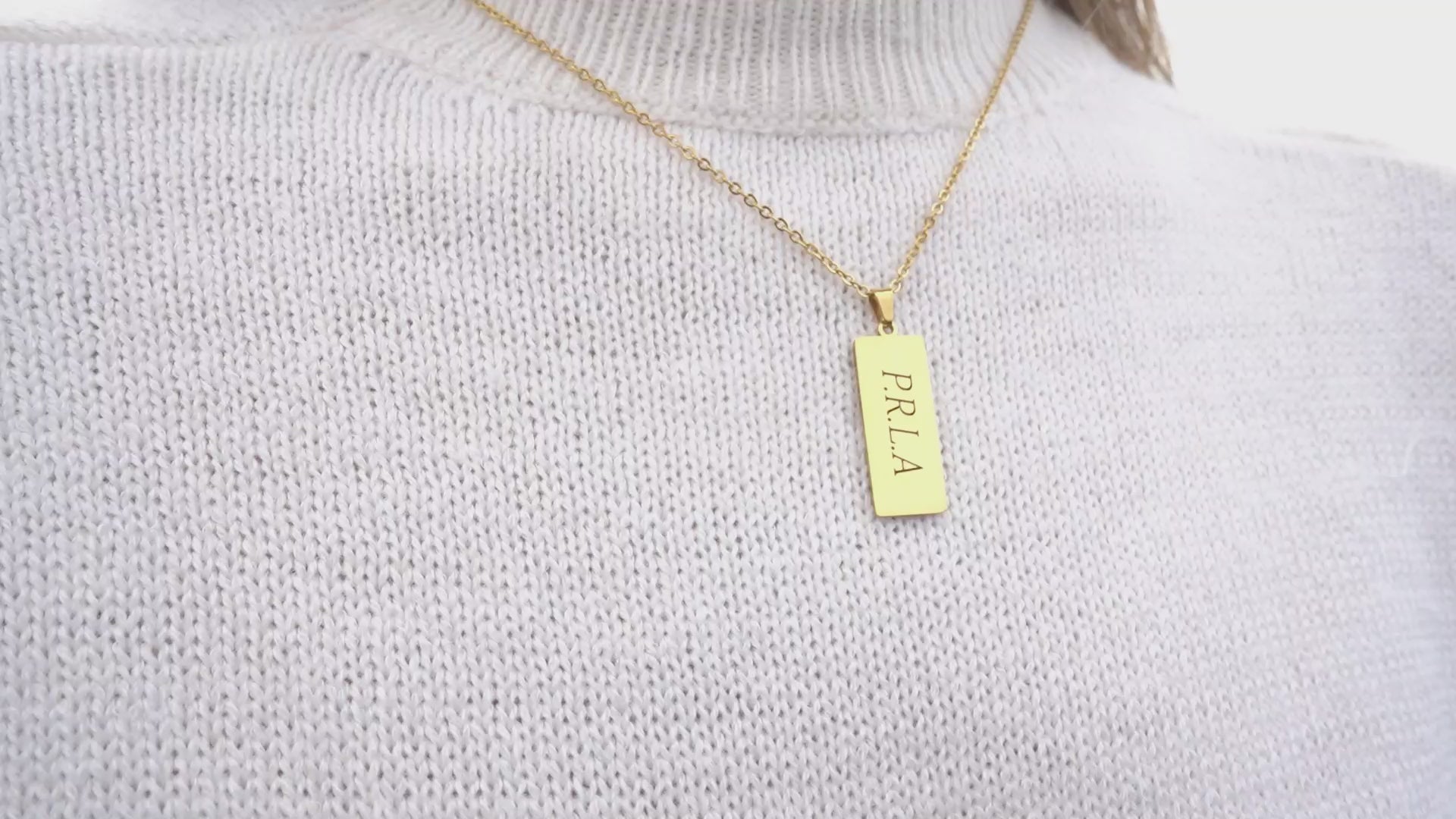 Personalized (30mm x 12mm) 18K Gold Vermeil Rectangle Pendant Necklace, Custom Tag | 18k Gold Vermeil