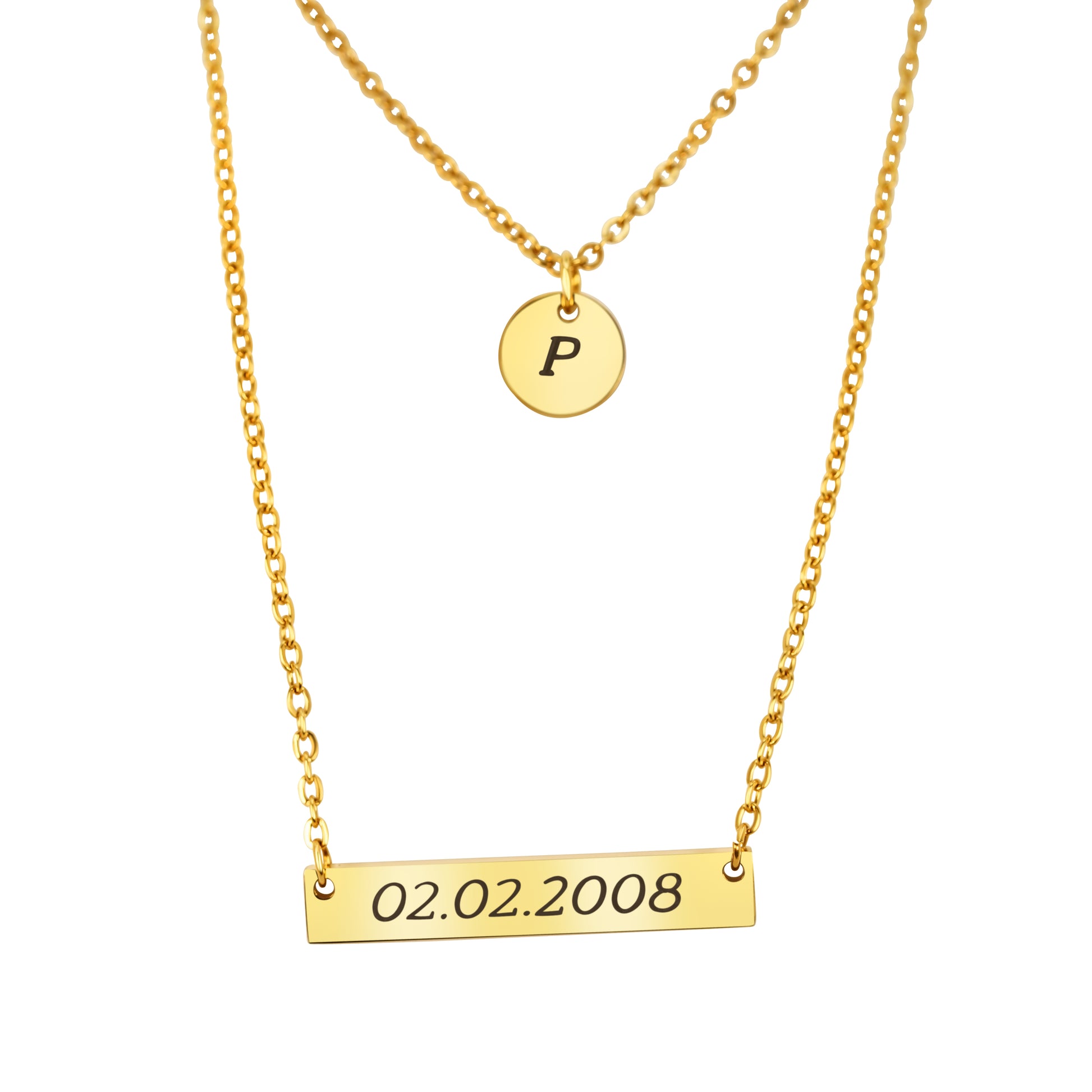 This pendant necklace is a beautiful 18k gold vermeil piece. Easily customizable with a choice of font to your liking. Feature a 35mm x 6mm with a 10mm circular pendant on a gold customizable charm/pendant.