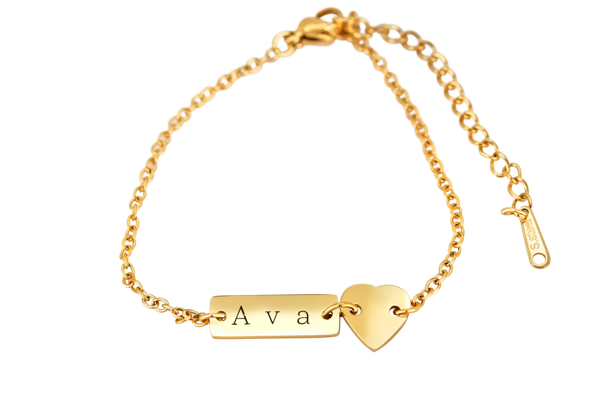 • Personalized Heart (10.5mm x 9mm) W/ Bar Bracelet (18mm x 6mm)| 18K Gold Vermeil Bracelet (6.5" w/ 2" extender).