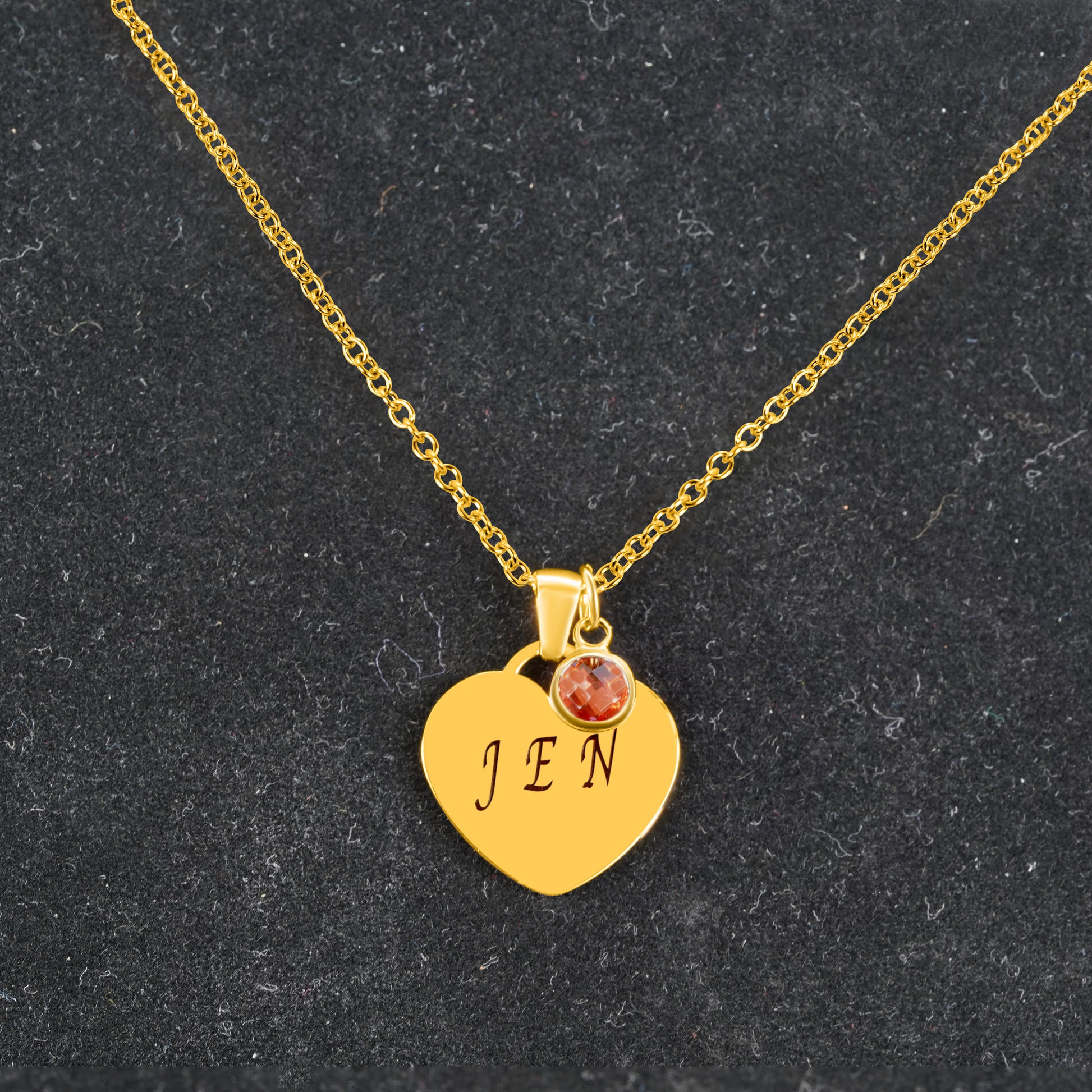 - Personalized Heart Pendant (15mm x 22mm x 1.5mm) W/ Birthstone Gem